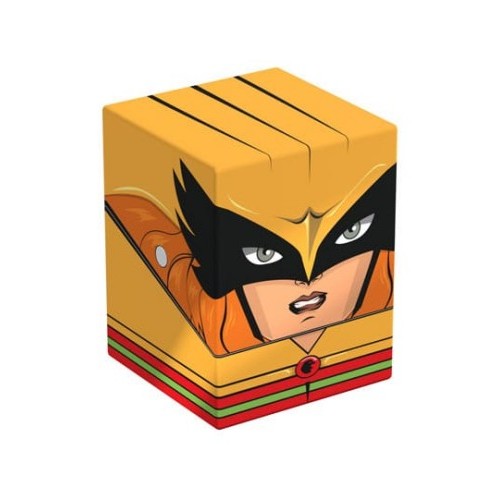 Collectible box for storing TCG decks, tabletop gaming accessories, and/or collectibles. The Hawkgirl™ Squaroe from the DC Justice League™ edition holds up to 100 cards in double protective sleeves if used as a deck box. Squaroes are made from 78% renewable recources.